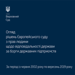 Пропонуємо до вашої уваги огляд рішень Європейського суду з прав людини щодо відповідальності держави за борги державних підприємств (за період із червня 2002 по вересень 2019 року).