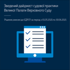 Дайджест охоплює нові правові позиції Великої Палати Верховного Суду, відображені в рішеннях, що оприлюднені в травні – червні 2021 року.