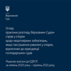 До вашої уваги огляд практики розгляду Верховним Судом справ у спорах щодо недоговірних зобов'язань, якщо такі рішення ухвалені у спорах, віднесених до юрисдикції господарських судів (за липень 2020 року – серпень 2021 року).