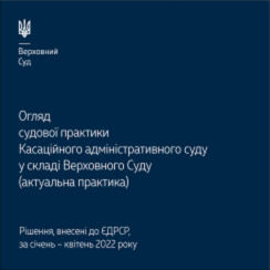 В огляді представлені рішення, внесені до ЄДРСР, за січень – квітень 2022 року. У ньому вміщено низку важливих правових позицій КАС ВС, сформульованих під час розгляду адміністративних справ.