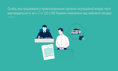 Вироком місцевого суду, залишеним без зміни судом апеляційної інстанції, дії особи, яка в період з липня по вересень 2022 року погодилася на пропозицію військових російської федерації та добровільно займала посаду водія чергової частини в «народній міліції» і виконувала обов’язки з перевезення й доставки поліцейських вказаного незаконного органу за необхідними адресами, а також ремонту і догляду за службовим автомобілем, було кваліфіковано за ч. 7 ст. 111-1 КК України. Засудженому призначено покарання у виді позбавлення волі на строк 12 років із позбавленням права обіймати посади в правоохоронних органах на строк 12 років і з конфіскацією всього майна, яке є його власністю.