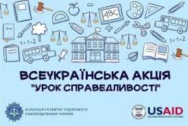 Всеукраїнську акцію "Урок справедливості" для школярів 1-4 класів було організовано Асоціацією розвитку суддівського самоврядування України, за підтримки Ради суддів України та сприяння Програми USAID "Нове правосуддя".